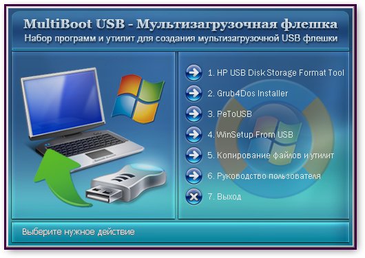 MultiBoot USB - мультизагрузочная флешка предназначена для установки операционных систем Windows XP/2000/Vista/7 и загрузки восстановительно-реанимационных образов и утилит непосредственно с USB накопителя (флешки).