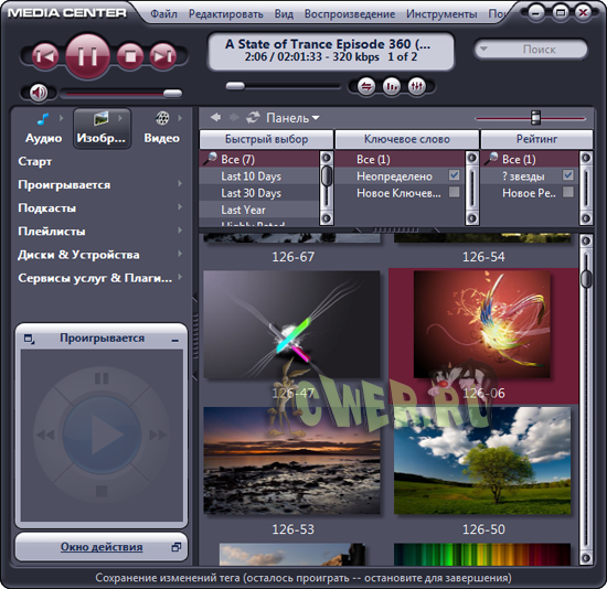 Мультимедийный центр (раньше назывался Media Jukebox). Проигрывает большинство популярных аудио и видео форматов, включая MP3, аудио CD (поддерживает CDDB) и DVD, может преобразовывать CD-аудиотреки в WAV и MP3, переписывать на жесткий диск виниловые диски и кассеты (убирая при этом помехи и шумы), а также создавать аудио-CD, причем для всех этих функций программа имеет множество настраиваемых параметров. Кроме этого, есть очень хороший и мощный по своим возможностям органайзер мультимедийных файлов, медиаредактор, эквалайзер, встроенный DSP и удобный планировщик заданий для автоматизации процессов проигрывания/записи, а также поддержка пульта ДУ. Из необязательных, но приятных функций - становящаяся уже почти стандартом для "приличных" программ возможность изменения внешнего вида с помощью скинов, мини-режим проигрывателя и "телевизор" (c картами ATI).
