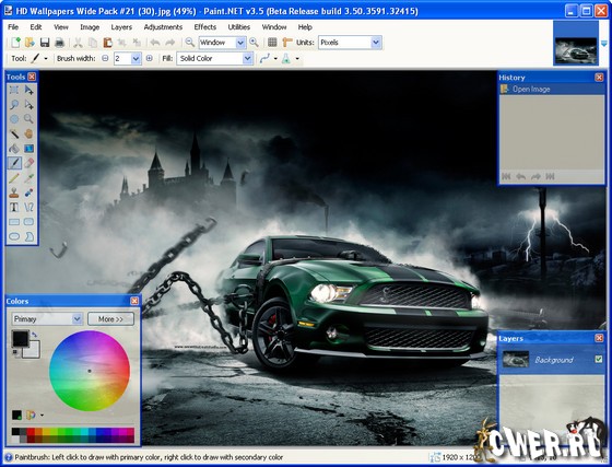 Новая версия бесплатного графического редактора, способного заменить стандартный Paint. Сразу стоит сказать, что Paint.NET разрабатывается в Вашингтонском университете (Washington State University), и эта разработка поддерживается корпорацией Microsoft. Графический редактор Paint.NET отличается продуманным интерфейсом и значительной функциональностью по сравнению со стандартным редактором Paint. Тут поддерживается работа со слоями (в том числе с прозрачными), удобная настройка панелей инструментов, удаление эффекта красных глаз (опция Red-Eye). Кроме того, программа содержит общие инструменты для работы с графикой, позволяет в удобном виде менять размер изображения, увеличивать чёткость картинки. Встроенными средствами Paint.NET на редактируемое изображение можно накладывать различные эффекты.