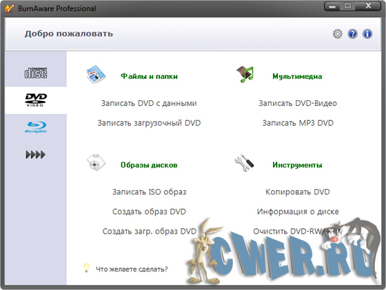 Простая и в тоже время мощная программа для записи и копирования любых дисков - CD, DVD, Blu-Ray, а также копирования CD и DVD. Программа позволяет выполнять все основные задачи по записи: работа с носителями CD/DVD, Blu-Ray; запись Audio CD и DVD-Video; копирование и прожиг образов и многое другое. Имеется многоязычный интерфейс, включая русский и поддержка Windows Vista.