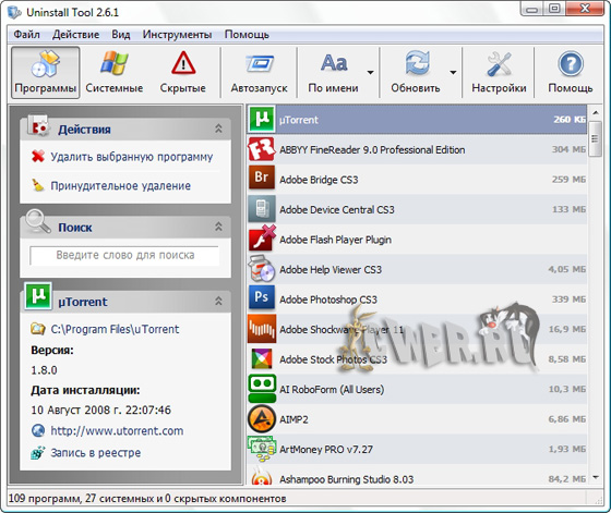 Обновилась программа Uninstall Tool. Представляет собой аналог апплета "Установка и Удаление программ", но предоставляет пользователю гораздо больше возможностей. Так, при помощи этой утилиты можно удалить даже те программы, информация о которых отсутствует в штатных средствах системы.
