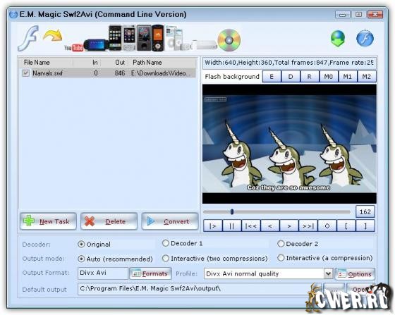 Magic Swf2Avi - это мощная программа для конвертации Flash(swf) в форматы AVI, MPEG, MPEG2 TS, MP4, WMV, 3GP, GIF, H.264/MPEG-4 AVC, H.264/PSP AVC Видео, MOV, Youtube FLV, и т.п. Теперь вы можете просматривать Flash(swf) в iPod, PSP, Zune, 3GP мобильных телефонах (Nokia, Sony Ericsson, Motorola), Apple TV, iPhone и т.д. Magic Swf2Avi 2008 за один шаг конвертирует и прожигает Flash(swf) на VCD, SVCD, DVD. В программу интегрирован Total Video Player.