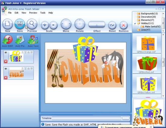 Goztun Flash Joiner 4.0 это новый путь для создания вашего SWF кино. Программа позволяет объединять SWF-файлы, текст, музыку и картинки в один SWF-файл.