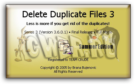 Clone Remover Pro - программа для поиска дубликатов файлов. Поможет найти одинаковые файлы, находящиеся в разных местах (жестких дисках, CD, DVD и т.д.) вашего компьютера, даже если названия файлов не совпадают. Поиск дубликатов файлов в этой программе осуществляется двумя нажатиями кнопок, т.к. программа очень проста в использовании и не требует особых навыков работы с компьютером. Если, что-то будет не понятно, вы сможете воспользоваться системой помощи, встроенной в программу. Даже ради интереса, знать сколько одинаковых файлов скопилось у вас на носителях информации - очень полезно.