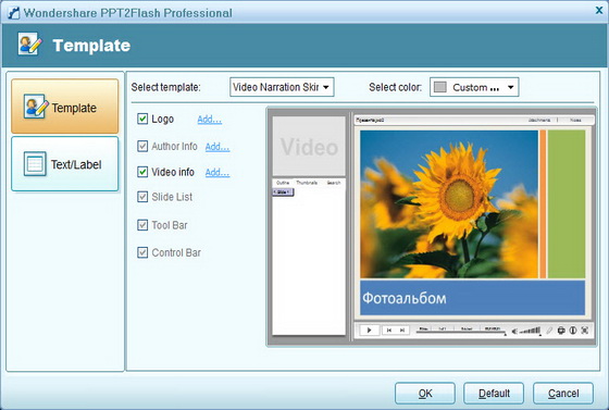Wondershare PPT2Flash Professional позволяет c легкостью создавать профессиональные Flash презентации в несколько кликов. С данной программой, вы можете добавить тексты, графику, звуки, flash фильмы для своих презентаций. Присутствует возможность создавать содержание SCORM/AICC для LMS. Программа интегрируется в PowerPoint что дает возможность одновременно работать в двух приложениях.