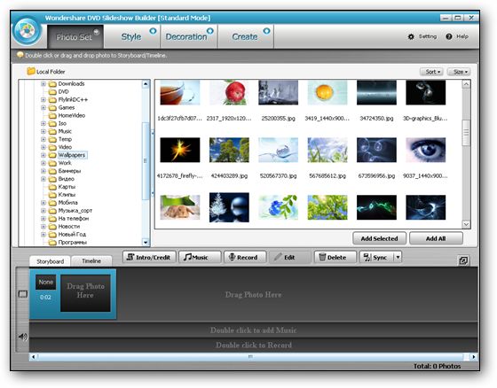 Wondershare DVD Slideshow Builder - простой, лаконичный инструмент для создания и просмотра домашнего видео, создания слайд-шоу из ваших цифровых фотографий для последующего просмотра получившегося результата по телевизору. Программа позволит Вам создавать Flash слайд-шоу (Flash for Видео), идеально подходящие для размещения на Вашем веб-сайте; генерировать MPEG видео файлы для мобильных устройств, таких как Apple iPod, Sony PSP, сотовый телефон; создавать видео слайд-шоу фотографий, готовые к загрузке на YouTube, MySpace. При помощи нескольких щелчков, программа создает потрясающие слайд-шоу фотографий с музыкальным сопровождением, CD или DVD меню, с эффектами перехода.