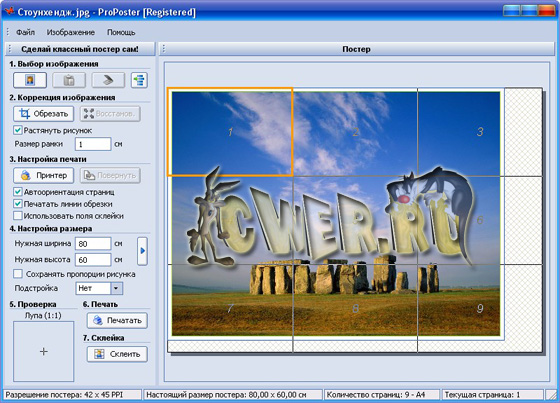 Программа для создания из картинки/фотографии постеров разного размера. Для печати не нужен специальный плотер, теперь печатать постеры можно на обычном принтере!
