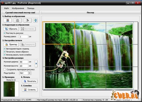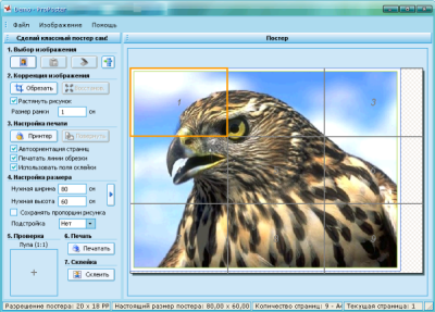 Программа для создания из картинки/фотографии постеров разного размера. Для печати не нужен специальный плотер, теперь печатать постеры можно на обычном принтере!