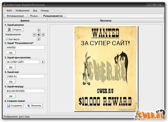 Poster Forge – легкий в использовании и абсолютно бесплатный генератор постеров. Встроена возможность распечатки плакатов больших размеров на обычном принтере. Не жди, вырази свои творческие идеи в новых постерах и поделись ими со своими друзьями!