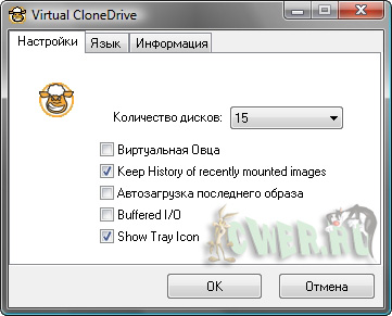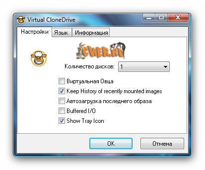 Virtual CloneDrive - утилита, предназначенная для создания виртуальных дисков из образов, снятых программами CloneCD и CloneDVD. После инсталляции Virtual CloneDrive и перезагрузки компьютера, в системе создаётся виртуальный CD/DVD-ROM, в который и вставляются снятые образы. При этом, вы имеете возможность пользоваться "клонами" CD/DVD дисков непосредственно с винчестера компьютера, без записи дисков на физические CD/DVD. Образы добавляются (монтируются/демонтируются) через контекстное меню созданного виртуального диска. Операционная система определяет этот диск как физический CD/DVD-ROM. Настроек у программы практически нет, во всяком случае, не надо регулировать скорость чтения виртуального CD/DVD-ROM привода и заботиться о читабельности. Такой диск работает намного результативней и быстрее, чем физический диск, вставленный в CD/DVD-ROM. Стоит отдельно отметить, что можно создавать одновременно до пятнадцати виртуальных дисков.