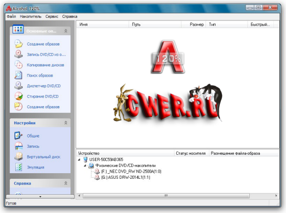 Alcohol 120% - эмулятор CD/DVD-дисков. Программа создает на жестком диске ПК пользователя образ диска с данными, аудио или видео информацией, а затем предоставляет доступ к этим данным другим программам так, словно искомый диск находится в приводе. Alcohol 120% поддерживает работу со многими форматами CD/DVD, имеет возможность работы с 31 образом одновременно, обеспечивает несоизмеримо большую (по сравнению с CD) скорость передачи данных между приложением и образом диска. Alcohol 120% может работать с большинством известных файлов-образов, эмулирует работу 200х скоростного CD-ROM, есть поиск образов, еще одна положительная черта - программа может копировать защищенные диски, обходить защиту SafeDisc, StarForce (частично), Securom и LaserLock.