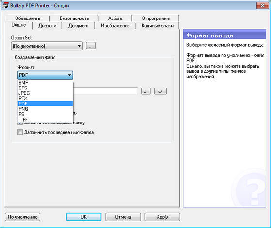 BullZip PDF Printer - утилита для создания файлов PDF. Она устанавливает в системе виртуальный принтер, при печати на который автоматически создается файл PDF. PDF Printer позволяет изменять разные параметры PDF-документа. Присутствует возможность устанавливать на открытие файла пароль, зашифровывать документ, используя 128-битное шифрование, добавлять "водяные знаки" и задний фон, изменять размер и прозрачность, разворачивать страницы и многое другое. Кроме того, PDF Printer может объединять несколько PDF-документов в один и разбивать его на части.