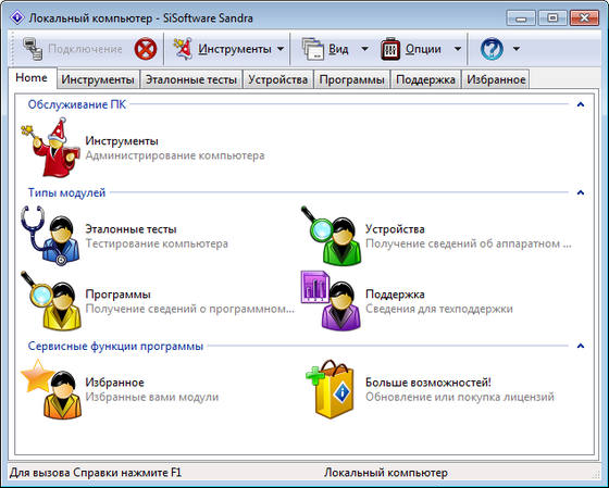 SiSoftware Sandra - это информационная и диагностическая программа. Она предоставляет практически всю информацию о вашем аппаратном и программном обеспечении (включая недокументированную), которая вам может понадобиться.