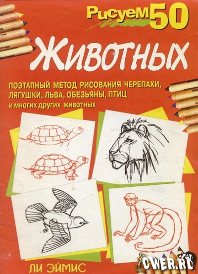 Содержит пошаговые инструкции для практического рисования различных представителей животного мира Земли (чайка, попугай, черепаха, заяц, улитка, белка, лев, лошадь, слон, дельфин, индюк, корова, стрекоза, краб, кенгуру, паук и ещё 30 видов) в процессе освоения искусства чёрно-белой и полутоновой графики.