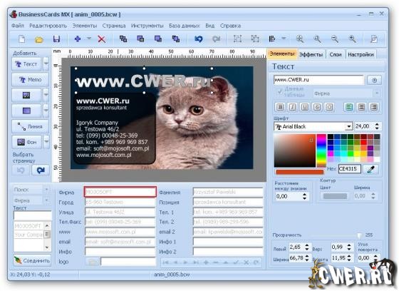 Программа BusinessCards MX для создания и проектирования визиток.