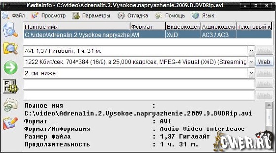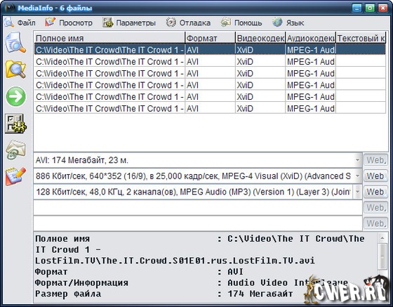 MediaInfo - программа, которая предоставляет подробную информацию об аудио и видео файлах. MediaInfo показывает, каким кодеком сжато видео, с каким битрейтом, какое в нем соотношение сторон и количество кадров в секунду. Для аудиофайла MediaInfo показывает используемый кодек, битрейт, язык, количество каналов, частоту выборки и т.д. Показав сведения о файле, программа тут же посоветует, где можно скачать недостающий кодек или проигрыватель.
