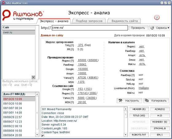 При помощи утилиты Site-Auditor Вы сможете быстро собрать данные, необходимые для оценки видимости сайта в Рунете.