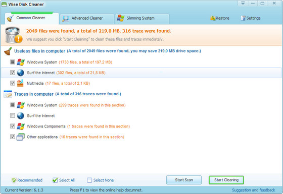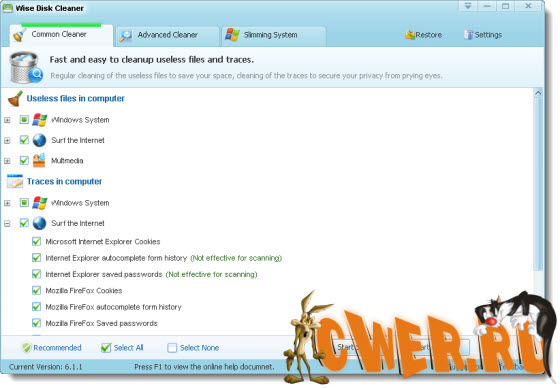 Wise Registry Cleaner и Wise Disk Cleaner - утилиты для чистки реестра и для быстрого и легкого освобождения свободного места на жестком диске соответственно. Wise Registry Cleaner сканирует реестр и ищет в нем некорректную и устаревшую информацию, после удаления которой операционная система работает более быстро. После того, как программа проанализирует проблемы вашей системы, вы можете сами просмотреть каждую найденную неполадку и посмотреть ее детальное описание. Wise Disk Cleaner удаляет ненужные мусорные файлы, которые не используются программами, установленными в вашей системе. Программа может определять более 50 типов мусорных файлов, и вы можете сами добавлять любые типы файлов, которые считаете мусором.