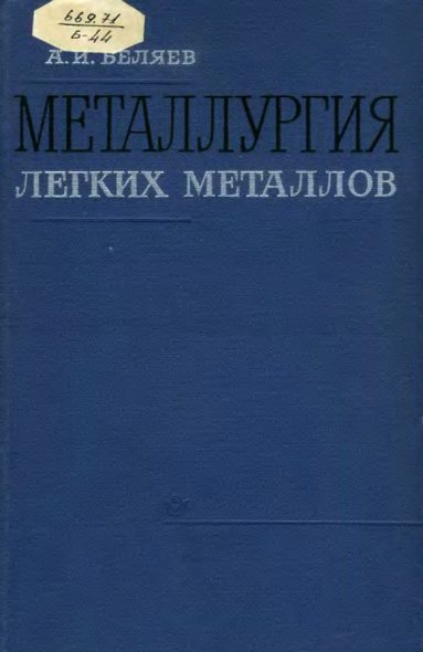 Изложены основы металлургии важнейших легких металлов — алюминия, магния, бериллия, кальция, бария и лития. Приведены свойства каждого из этих металлов, области их применения, основные положения теории и технологии производства.