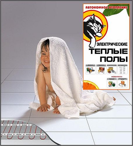 Электрический подогрев пола (теплый пол) способен стать как основной, так и дополнительной (используемой совместно с другими нагревательными приборами) системой отопления. Ее можно включить в любое время года, независимо от распорядка работы ТЭЦ. Источник тепла - нагревательный кабель. Он превращает пол в большую панель, равномерно излучающую тепло.