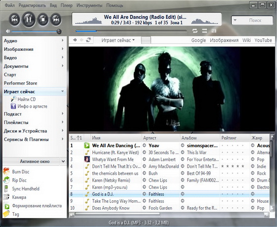 J.River Media Center - мультимедийный центр. Проигрывает большинство популярных аудио и видео форматов, включая MP3, аудио CD и DVD, может преобразовывать CD-аудиотреки в WAV и MP3, переписывать на жесткий диск виниловые диски и кассеты, а также создавать аудио-CD, причем для всех этих функций программа имеет множество настраиваемых параметров. Кроме этого, есть очень хороший и мощный по своим возможностям органайзер мультимедийных файлов, медиаредактор, эквалайзер, встроенный DSP и удобный планировщик заданий для автоматизации процессов проигрывания/записи, а также поддержка пульта ДУ. Из необязательных, но приятных функций - становящаяся уже почти стандартом для "приличных" программ возможность изменения внешнего вида с помощью скинов, мини-режим проигрывателя и "телевизор".