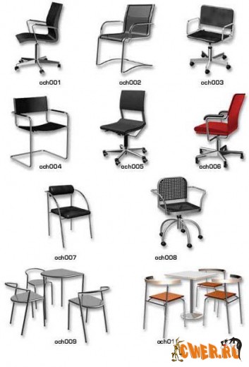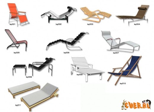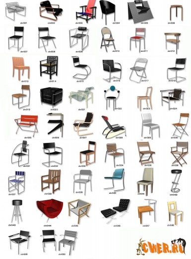 Большая коллекция стульев - стулья бытовые, стулья офисные, лежаки. Всего в архиве 70 моделей. Формат C4D, 3DS, max.