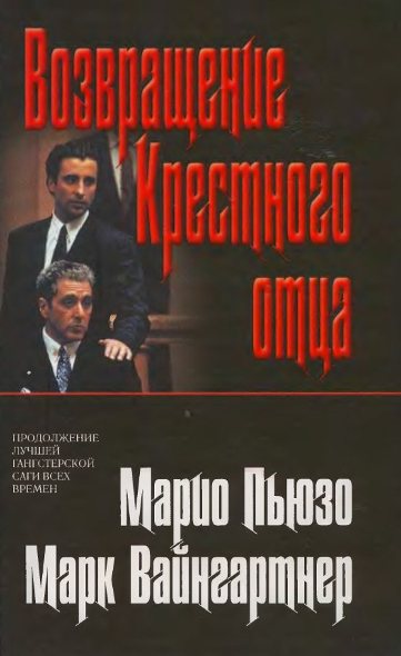 Наконец-то это случилось! Нашелся человек, не побоявшийся взяться за столь тяжелый труд, — его имя Марк Вайнгартнер, и он набрался мужества и продолжил дело великого Марио Пьюзо, написав «Возвращение Крестного отца». По нашему мнению, получилось весьма неплохо.