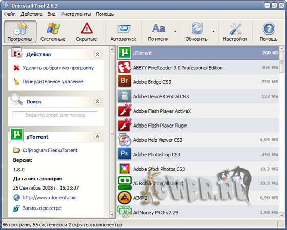 - удаление программ, деинсталляция которых стандартными средствами невозможна.