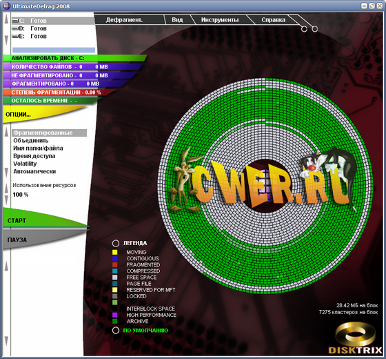 Портативная версия известного дефрагментатора UltimateDefrag 2008 v2.0.0.48! Уникальный дефрагментатор и оптимизатор размещения файлов на жестком диске, который учитывает больше чем только фрагментацию файлов!