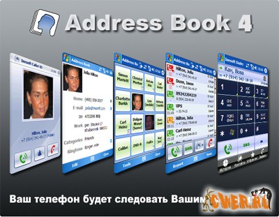 Address Book - мощный менеджер контактов и телефона с фото, а также системой поиска позволяющий найти контакт по информации из любых полей. Встроенный T9 позволит быстро найти контакт и набрать номер. Точное определение телефонов и фото звонящего. Вы можете настроить блокировку и персонифицированные мелодии звонящего. Address Book идеально приспособлен для обслуживания одной рукой без использования стилуса, интегрирован с сервисами SMS и календарем.
