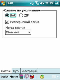 Pocket RAR - это версия архиватора RAR для платформ Pocket PC. Программа может выполнять операции сжатия, распаковки и удаления файлов в архивах форматов RAR и ZIP. Программа не предоставляет дополнительных функций, доступных в WinRAR (например, восстановление архивов). Дополнительные функции были убраны из программы, чтобы она не занимала много места в карманном компьютере.