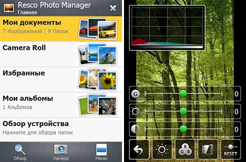 Resco Photo Manager - программа-альбом для цифровых фотографий и видео-роликов с самым широким функционалом. Помимо стандартных функций (изменение размера изображения, поворот картинки, слайд-шоу с плавным переходом), поддержка G-сенсора, прямой доступ к камере, закачка на web/ftp и многое другое.