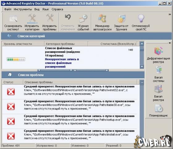 Advanced Registry Doctor - сканирует реестр, диагностирует и лечит всевозможные проблемы, которые могут приводить к некорректной работе системы. Таким образом, система станет загружаться быстрее и работать лучше. Кроме того, в программу входит функция дефрагментации реестра, встроенный планировщик, функция создания резервных копий и восстановления и многое другое. Автоматическая функция исправления ошибок поможет любому, независимо от его компьютерных знаний, очистить реестр всего одним кликом мыши. Опытные пользователи, смогут исправлять ошибки реестра вручную.