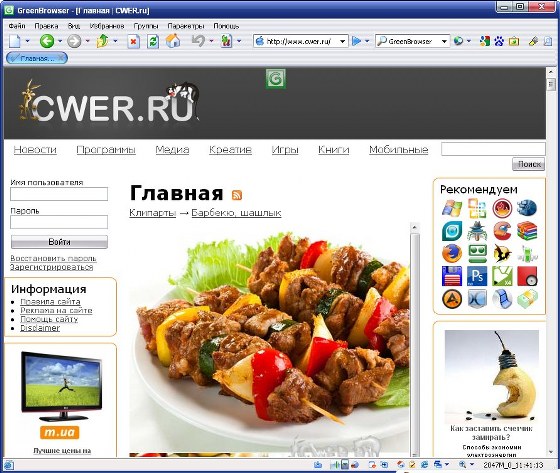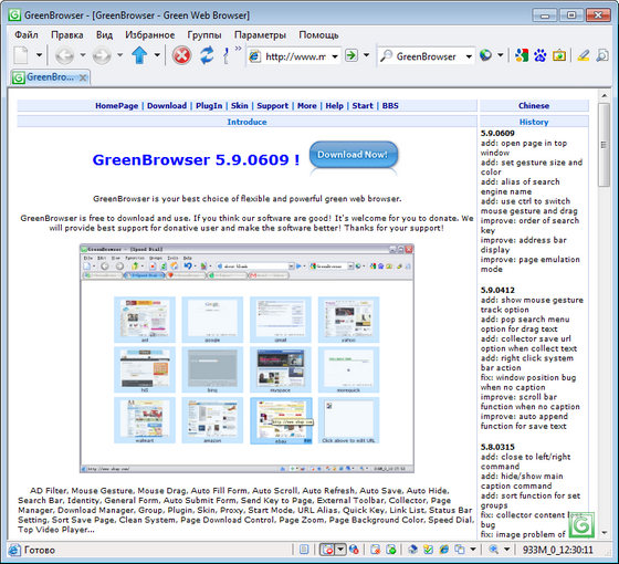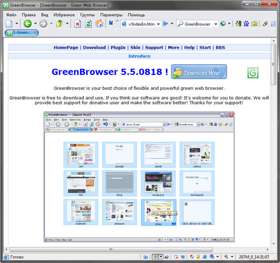 GreenBrowser - многовкладочный браузер на движке Internet Explorer с расширенными возможностями: