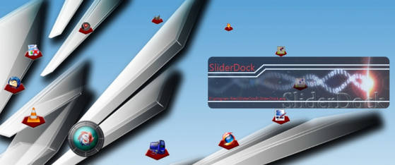 SliderDock - утилита позволяющая быстро и легко получить доступ к наиболее важным и часто используемым программам на компьютере. Позволяет навести порядок на рабочем столе и всегда иметь под рукой основные приложения. Содержит набор иконок и возможность настройки под каждого пользователя. Отличается оригинальным интерфейсом: иконки приложений располагаются в наклонной окружности, таким образом Вы видите все иконки сразу и можете, прокручивая список, двойным щелчком запускать нужную программу. Перетащить необходимые программы в SliderDock можно при помощи функции Drag 'n' Drop, также можно изменять порядок значков. Поддерживает перетаскивание виртуальных папок "Мой компьютер" и "Корзина".