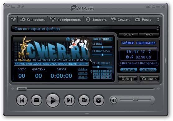 jetAudio - популярный проигрыватель мультимедиа файлов. Программа поддерживает огромное число форматов, среди которых: WAV, MP3, MP3Pro, OGG, WMA, MPG, AVI, WMV, MIDI, RM и другие. При помощи этой программы можно не только слушать и смотреть медиафайлы, а также накладывать звуковые эффекты, изменять скорость просмотра видео, оцифровывать аудио диски, преобразовывать файлы из одного формата в другой и многое другое. Разработкой данной программы занимается компания COWON известная в первую очередь своими аудио-плеерами (материальными). Такой функциональности, как у бесплатной версии плеера jetAudio подчас не бывает и у платных проигрывателей. Кроме всех своих функций, данный плеер обладает очень симпатичным и удобным интерфейсом, а также поддерживает работу с субтитрами и Flash-плеерами.