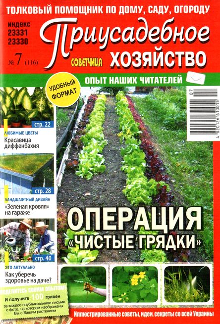 «Приусадебное хозяйство» от "Советчицы" - толковый помощник по дому, саду, огороду, которому известны все тонкости выращивания, обрезки, поливки, ландшафтного дизайна.