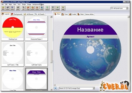 Acoustica CD/DVD Label Maker - одна из лучших программ для создания обложек для дисков и рисунков на их поверхности.