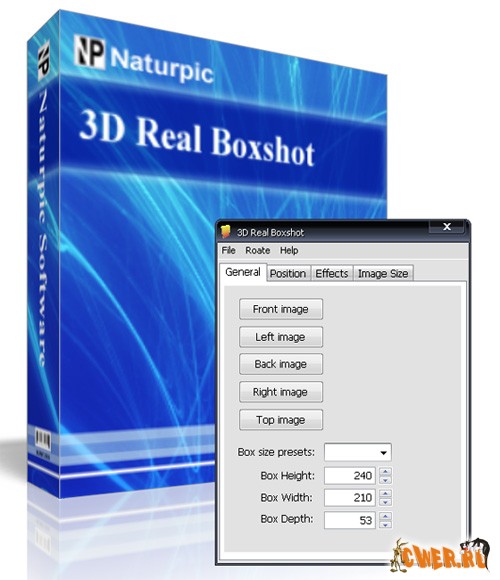 Утилита для создания боксов (графических 3D-коробок) для различных продуктов. Имеется возможность поворота и зуммирования бокса в режиме реального времени. Функция автоматического вращения позволит увидеть созданный бокс со всех сторон. Для получения результата необходимо загрузить в программу созданное Вами изображение, после чего тут же получите готовый вариант бокса. 3D Real Boxshot может импортировать изображения BMP, GIF, JPG, PNG, TGA, TIF, EMF, WMF и WBMP и сохранять полученные результаты в форматах BMP, GIF, JPG, PNG, TGA, TIF, EMF, WMF, WBMP и ICO. Также присутствует возможность сохранения анимации в формате AVI.