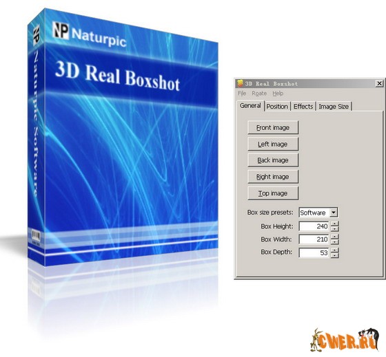 Обновленный Naturpic 3D Real Boxshot - незаменимый инструмент для создания качественных коробок для ваших программ. Вы можете с легкостью вращать и увеличивать поле в режиме реального времени, это позволяет сделать ваш эскиз намного лучше. Просто загружайте изображения в программу и у вас получится уникальная и красиво оформленная коробка для вашего продукта. 3D Real Boxshot умеет работать с BMP, GIF, JPG, PNG, TGA, TIF, EMF, WMF и WBMP файлами и умеет сохранять результат в BMP, GIF, JPG, PNG, TGA, TIF, EMF, WMF, WBMP и ICO формат, так же есть возможность сохранения анимации в AVI файл.