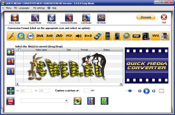 Quick Media Converter HD - универсальный и быстро работающий конвертер, поддерживающий большинство медиаформатов (от наиболее распространенных до самых экзотических).