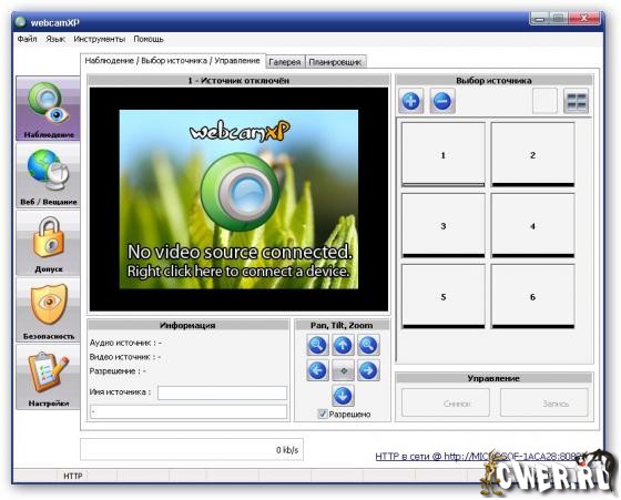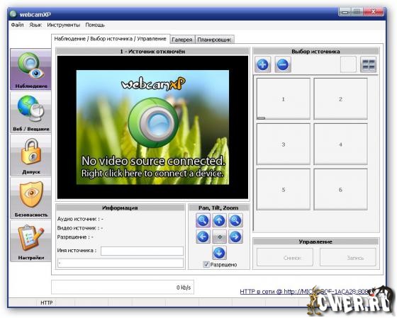 WebcamXP - мощная программа для работы с веб-камерами (поддерживает до 10 камер), позволяющая предоставить доступ к вашей камере (вернее, к видеопотоку) любому пользователю без установки на компьютер специального серверного программного обеспечения. Довольна проста в настройке: в Webcam XP имеются все необходимые утилиты, поэтому потребуется настроить всего несколько параметров, а именно указать порт сервера и путь к локальной директории. Кроме видеокартинки, получаемой с веб-камер, можно использовать видео, которое передаётся по локальной сети.