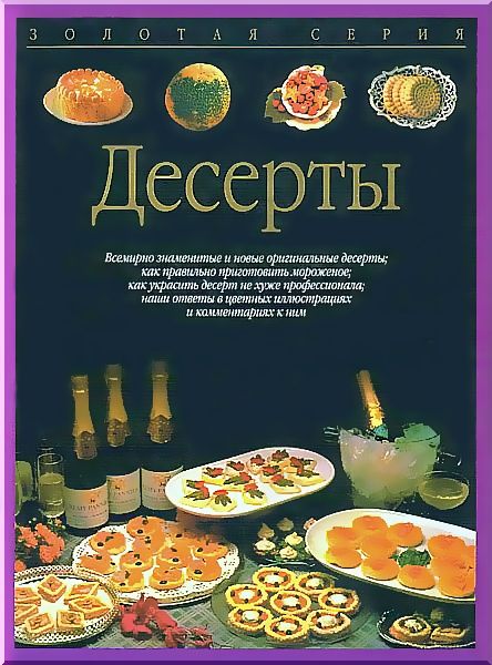 Десерт – венец любого удавшегося застолья. Он был и остается «гвоздем программы» не только праздничного стола, но и каждодневного меню, особенно если его приготовление не требует слишком много времени. Также Вы узнаете об энергетической ценности готовых блюд и полезную информацию об их компонентах. Для специалистов и начинающих!