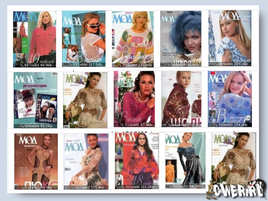 Вязание крючком и на спицах, бисероплетение, рукоделие, шитье. Для удобства номера журнала распределены по нескольким архивам.