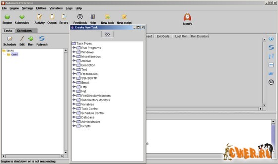 AutoMate Enterprise - мощная программа для автоматизации практически любых процессов как на локальном компьютере, так и в масштабах локальной сети, причем знаний программирования для этого не требуется. В программе предустановлено более 100 разнообразных действий, комбинируя которые, можно добиться автоматизации выполнения абсолютного большинства возможных задач. Процесс составления задания на автоматизацию процесса достаточно прост, вдобавок при его создании можно использовать метод перетаскивания. Доступные задания включают запуск и закрытие приложений, веб-сайтов, FTP и E-Mail сессий, SQL запросы, FTP передачи, запись и чтение из файлов, отправка электронной почты. Кроме того, есть действия «принятия решения», такие как ожидание появления или исчезновения определенных окон, выбор окна на основе текстового содержания, контроль значения текста.