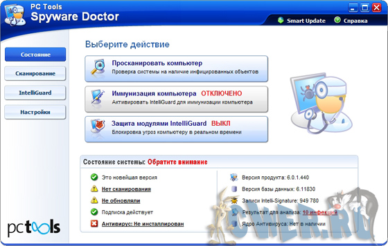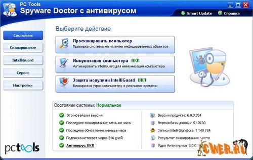 Spyware Doctor with Anti-Virus 6.0.0.386 - Вирусы были вчера. Сегодня новые глобальные угрозы требуют новых серьезных решений. Spyware infects over 80% of all PCs. - Троянами заражены около 80% всех компьютеров в мире! У этой программы - 75 миллионов скачиваний, и миллионы пользователей по всему миру! Имеет свои представительства в Соединенных Штатах, Великобритании, Швеции, Германии и Австралии. Рекомендован авторитетными экспертами, и признан как лучший продукт для борьбы с троянами и шпионскими программами -Spyware в 2005 и 2006 годах в лабораториях всемирных компьютерных журналов: PC Magazine, PC World, CNET, PC Pro Magazine, PC Authority, PC Answers и пр.