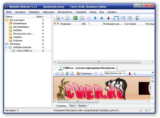 WebSite Watcher - мощная программа для мониторинга сайтов на предмет их обновления. При обнаружении изменений обновленные страницы сохраняются и на них цветом выделяются все изменения. Для более конкретного контроля за изменением определенной информации возможно использование хорошо настраиваемых фильтров. Программа поддерживает интеграцию с наиболее популярными браузерами - Internet Explorer, Firefox, Netscape и Opera.