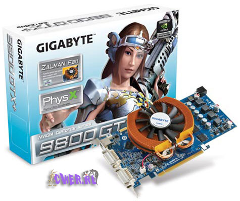 Не желая отставать от своих конкурентов, компания Gigabyte тоже добавила в ассортимент выпускаемых ею видеокарт оригинальную по исполнению версию графического адаптера NVIDIA GeForce 9800 GTX+, основанную на созданном по 55-нм технологии чипе G92b со 128 потоковыми процессорами.