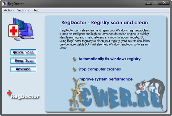 Программа чистит реестр Windows для повышения производительности и стабильности системы. Все найденные проблемы реестра помечаются по степени важности (High, Medium, Low). RegDoctor использует "умный" высокоскоростной алгоритм для точной идентификации неправильных и отсутствующих записей реестра, что обеспечивает сочетание скорости и эффективности работы программы. Есть функция быстрой чистки реестра при каждой загрузке системы.