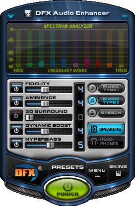 DFX Audio Enhancer - плагин для улучшения качества звучания плееров Winamp, Windows Media Player, Musicmatch, RealPlayer, J. River Media Center. C помощью DFX устраняются два главных недостатка - срез высоких частот и недостаточное разделение стереобазы и ее глубины. Есть хорошая подборка заранее заготовленных настроек, то есть пресетов. Проще его можно назвать как модный расширенный эквалайзер, с настройками, которых нет в плеерах.